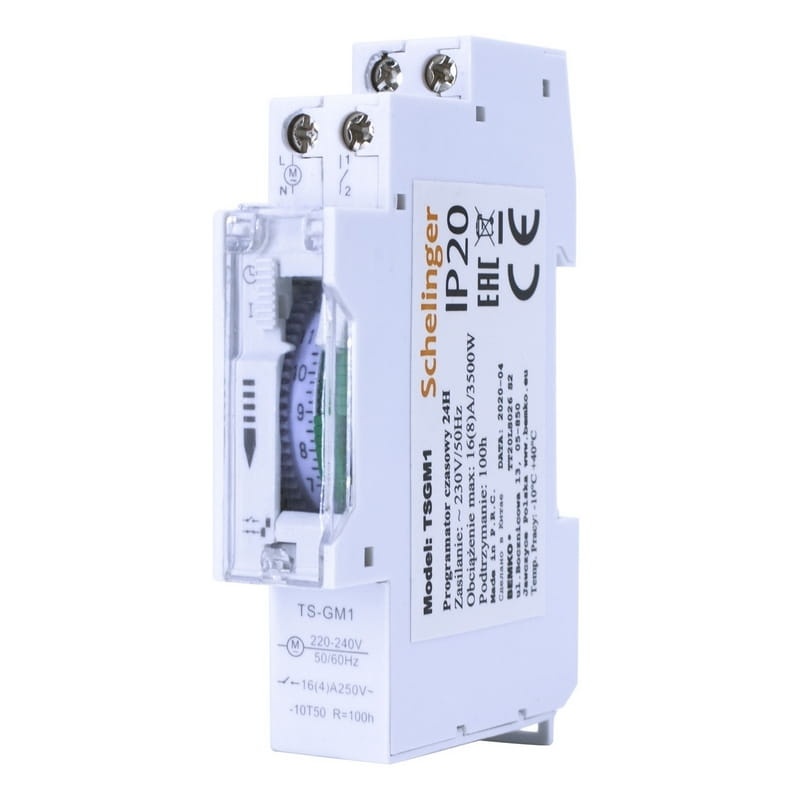 Mechaniczny programator czasowy 24H moduł DIN TH-35mm SCHELINGER