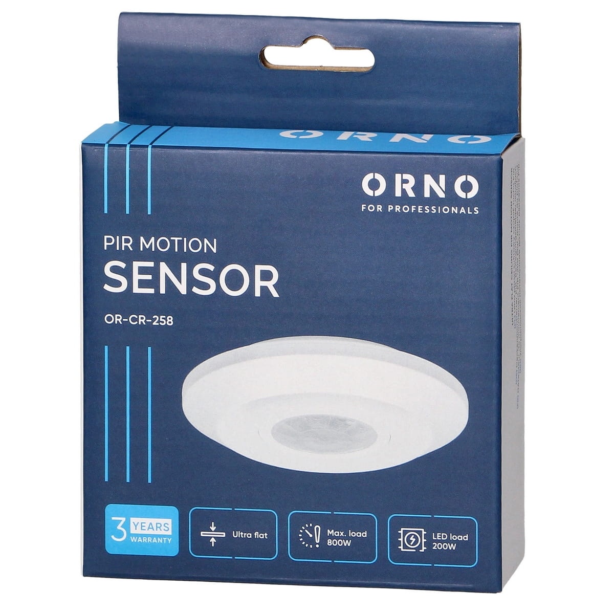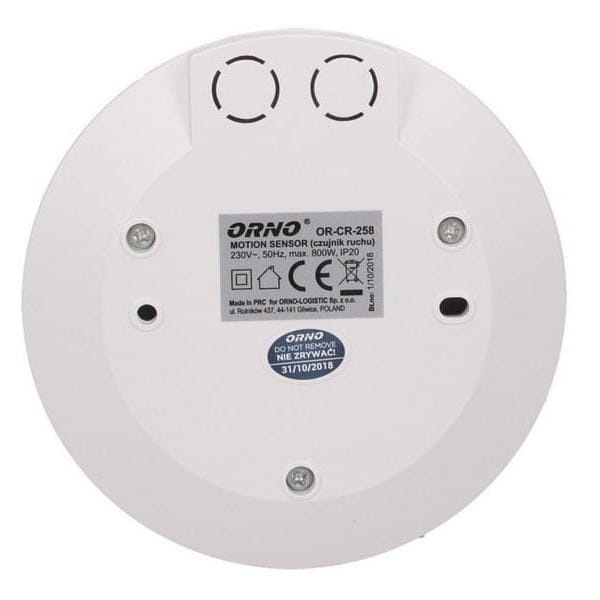 Czujnik ruchu PIR detekcja 360st. do 8m IP20 800W MINI ultra płaski OR-CR-258 ORNO