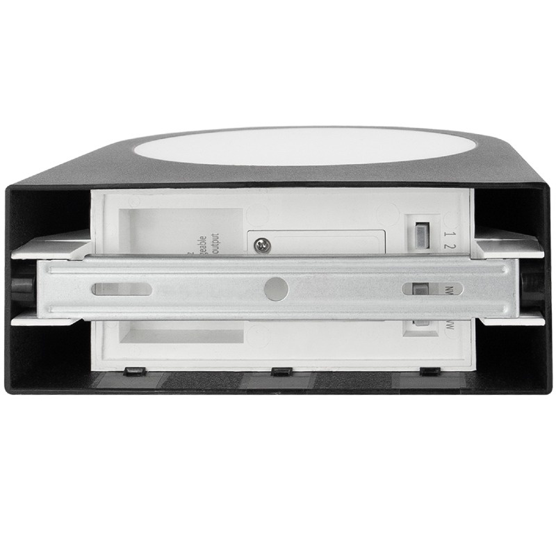 Oprawa została wykonana z wytrzymałego tworzywa sztucznego i posiada czarną obudowę, która dobrze komponuje się z nowoczesnymi elewacjami. Konstrukcja o wymiarach 196 × 180 × 70 mm zapewnia estetyczny wygląd oraz wygodny montaż natynkowy na ścianie budynku.