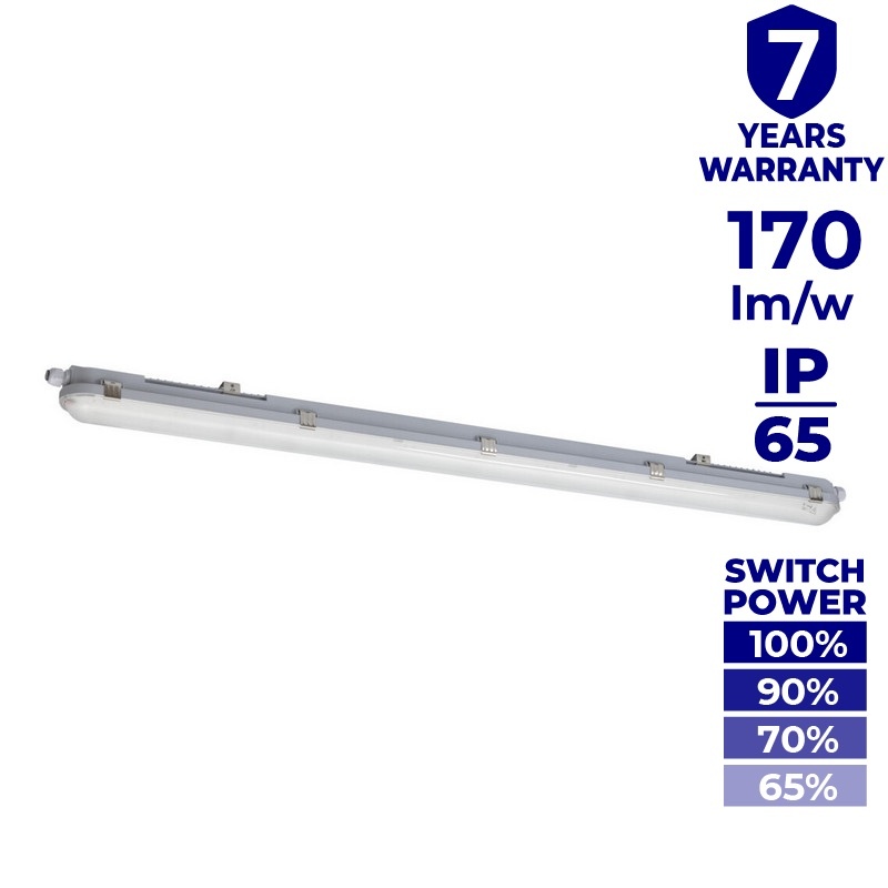 Oprawa LED hermetyczna Kanlux MAH PRO Y 38W to nowoczesne rozwiązanie przeznaczone do wymagających zastosowań. Dzięki regulowanej mocy i strumieniowi świetlnemu (od 22W/3750lm do 38W/6100lm) oraz barwie światła 4000K zapewnia optymalne oświetlenie w każdych warunkach. Zastosowanie markowych komponentów, takich jak zasilacz TRIDONIC i diody Everlight, gwarantuje długą, 7-letnią żywotność i niezawodną pracę.