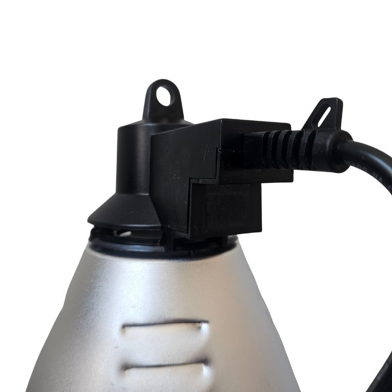 Przewód o długości 2,5 m umożliwia wygodny montaż w różnych konfiguracjach przestrzeni hodowlanej. Waga 0,7 kg zapewnia stabilność zawieszenia.