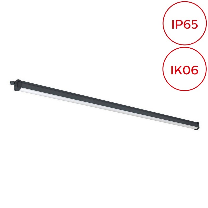 - Klasa szczelności IP65 i odporność IK06 chronią oprawę przed wilgocią, pyłem i uderzeniami
