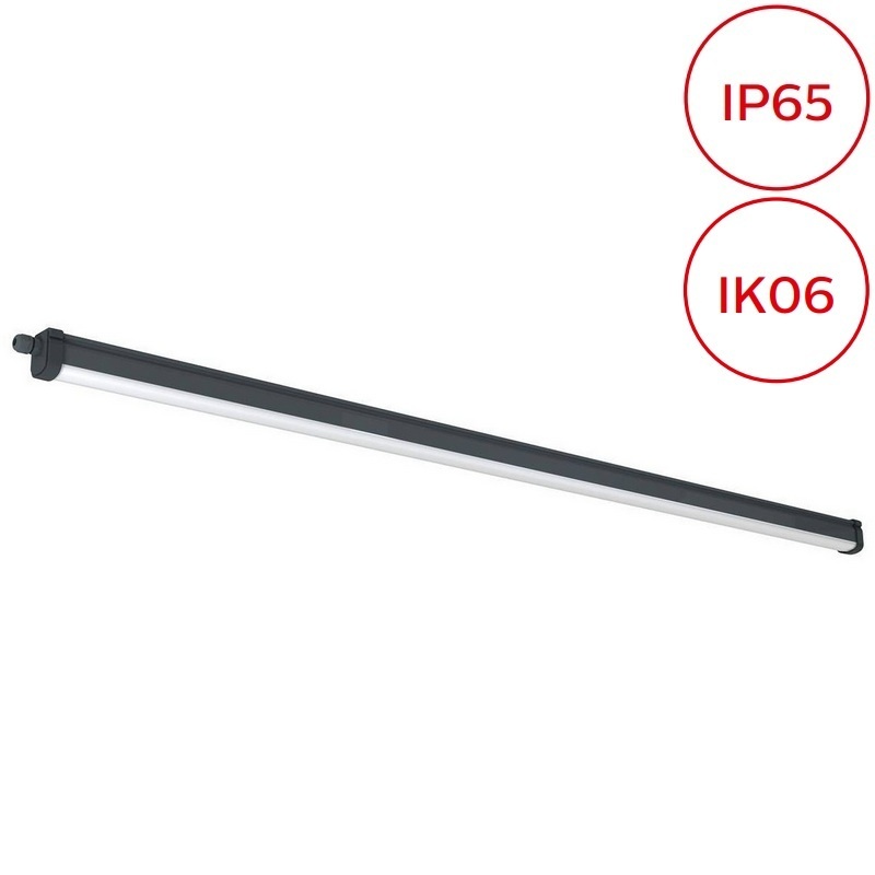 - Klasa szczelności IP65 i odporność IK06 chronią oprawę przed wodą, kurzem i uderzeniami