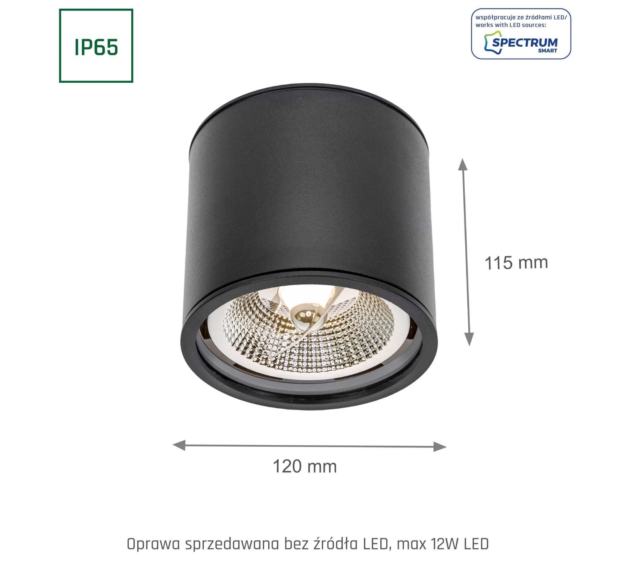 Oprawa oświetleniowa CHLOE na wymienne źródła ES111 GU10 czarna okrągła IP65