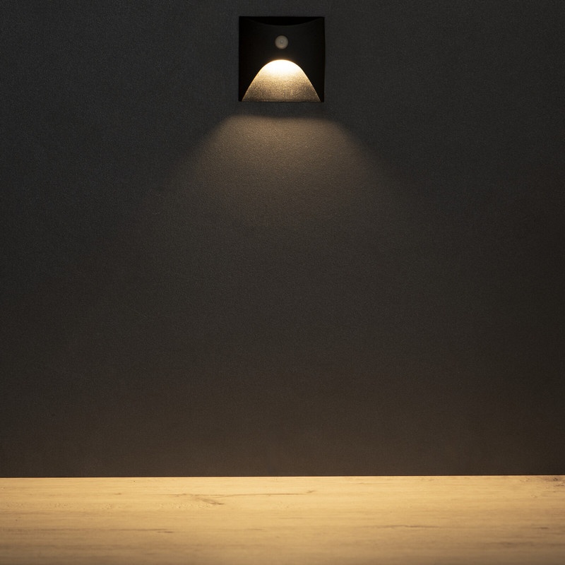 Oprawa przyschodowa LED EXIN 2.5W 3000K 50lm z czujnikiem PIR czarna kwadratowa IP65