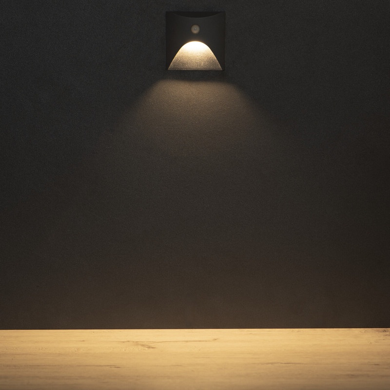 Oprawa przyschodowa LED EXIN 2.5W 3000K 50lm z czujnikiem PIR antracyt kwadratowa IP65