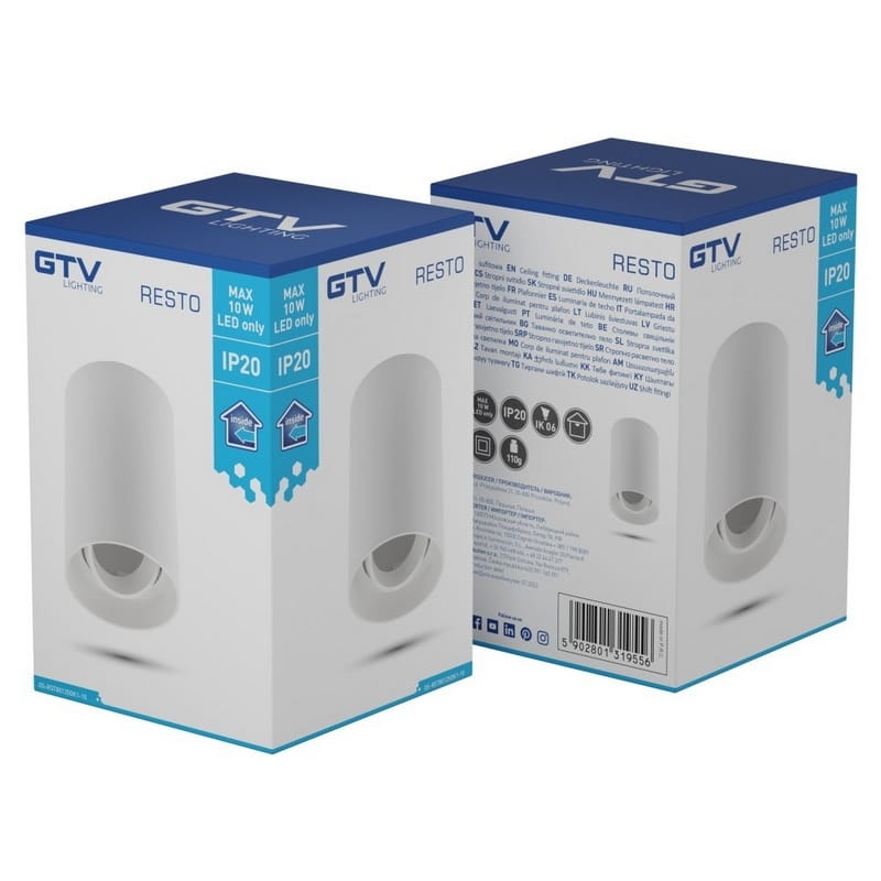 RESTO to okrągła oprawa sufitowa punktowa. Charakteryzuje się nowoczesnym wykonaniem idącym w połączeniu z minimalistyczną formą. Wykonana została z wysokiej jakości poliwęglanu. Dodatkowo dzięki regulacji (o zakresie 30°) można skierować światło w wybranym kierunku. RESTO przystosowany jest do źródeł światła z trzonkiem GU10, dzięki czemu użytkownik może wygodnie dopasować barwę oraz natężenie światła wypływającego z oprawy. Ponadto, oprawa doskonale zaprezentuje się pojedynczo lub w zestawie, tworząc niesamowity efekt, który podkreśli wyjątkowy wystrój i charakter wnętrza. Brak źródła światła w zestawie!