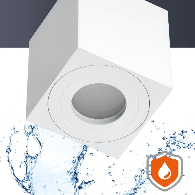 Model KOBI AQUARIUS SQUARE to kwadratowa oprawa sufitowa natynkowa, wykonana z aluminium, wyposażona w ceramiczną oprawkę GU10. Oprawa jest nieruchoma, przystosowana do montażu w strefach o podwyższonej wilgotności dzięki klasie szczelności IP44. Doskonała do łazienek, kuchni, korytarzy i nowoczesnych pomieszczeń użytkowych.
