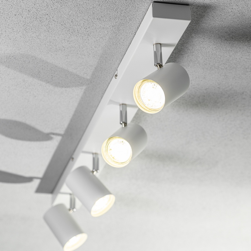 Sufitowa oprawa VENETO to dopracowana kolekcja oświetlenia, w której funkcjonalność łączy się z minimalistycznym, geometrycznym wzornictwem. W wariancie 4-punktowym na smukłej listwie umieszczono cztery cylindryczne reflektory z możliwością regulacji kierunku światła. Dzięki temu łatwo doświetlisz stół, blat roboczy, ciąg komunikacyjny lub wybrane strefy w salonie. Prosty, ponadczasowy kształt oraz białe matowe wykończenia pozwalają dopasować oprawę zarówno do nowoczesnych wnętrz, jak i aranżacji skandynawskich czy loftowych. VENETO dobrze wygląda solo, ale też jako część spójnej koncepcji – w pomieszczeniach o różnych metrażach możesz łączyć kilka opraw z tej samej linii, dopasowując liczbę punktów świetlnych do potrzeb. Brak źródła światła w zestawie! - sprawdź pasujące żarówki LED