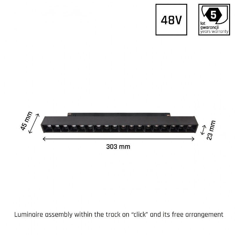 Oprawa LED SYSTEM SHIFT GRID M 17W 3000K 1700lm UGR<19 CRI90 35° na szynoprzewód 48V czarna