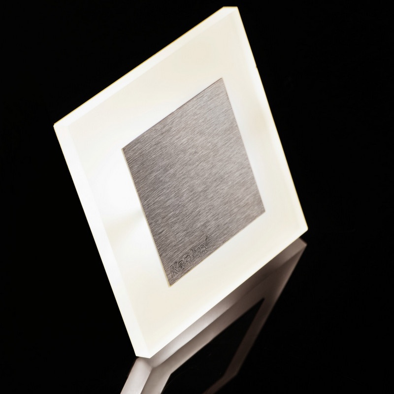 Front oprawy APUS LED AC-WW wykonano ze stali nierdzewnej, dzięki czemu oprawa prezentuje się elegancko i uniwersalnie. Kwadratowy kształt oraz niewielka głębokość sprawiają, że oprawa estetycznie wtapia się w ścianę, pełniąc zarówno funkcję użytkową, jak i dekoracyjną.