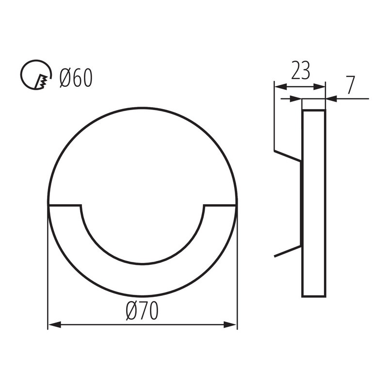 Oprawa jest przystosowana do montażu w standardowych puszkach elektroinstalacyjnych Ø60, a zasilacz 230V mieści się bezpośrednio w puszce.