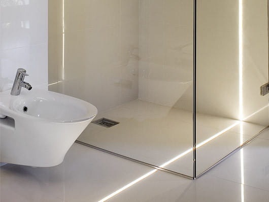- oświetlenie pomiędzy płytkami na podłodze i ścianie