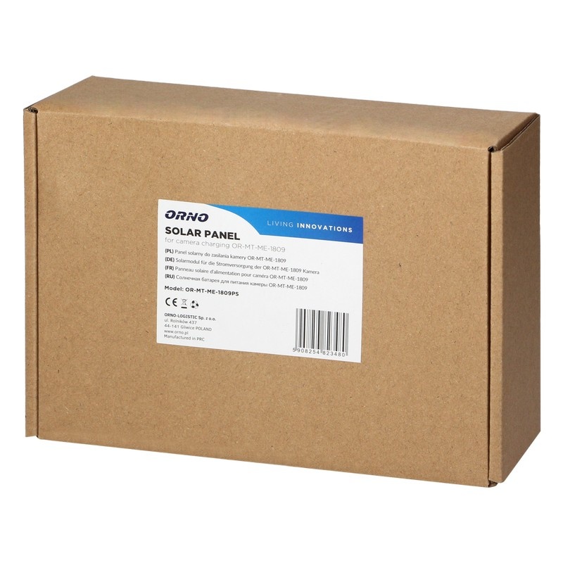 Panel solarny ORNO OR-MT-ME-1809PS to praktyczne akcesorium przeznaczone do zasilania bezprzewodowej kamery Wi-Fi OR-MT-ME-1809. Urządzenie przekształca energię słoneczną w energię elektryczną, umożliwiając ładowanie kamery w ciągu dnia bez konieczności podłączania jej do zewnętrznego źródła zasilania.