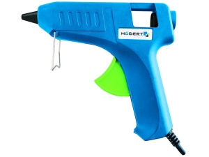 Pistolet do kleju termotopliwego o mocy 78W renomowanej firmy Högert – klejenie m.in. drewna, materiałów tekstylnych, folii, papieru, kartonu, tworzyw sztucznych, ceramiki, skóry itp. Skleja materiały, które mogą zostać poddane działaniu temperatury powyżej 70°.