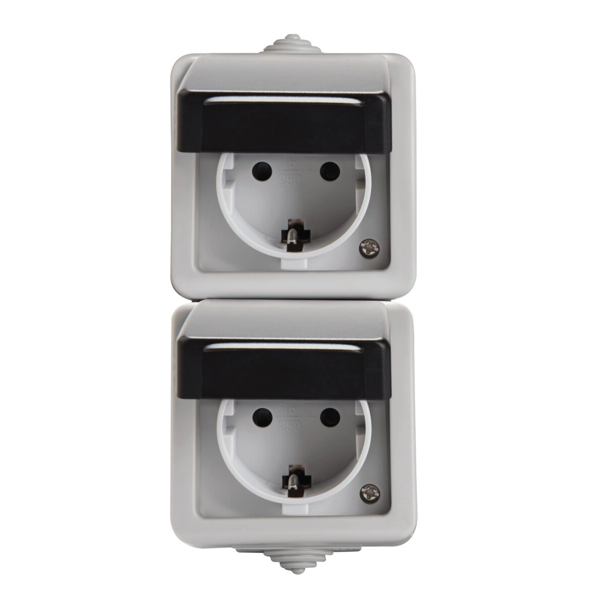 Gniazdo zasilające podwójne Schuko z ochroną styków TEKNO 05-2228-143 sz