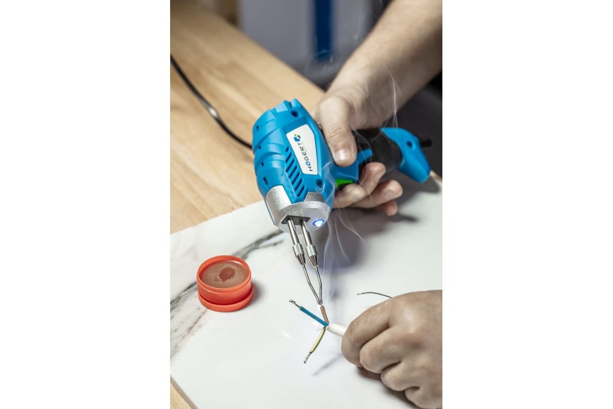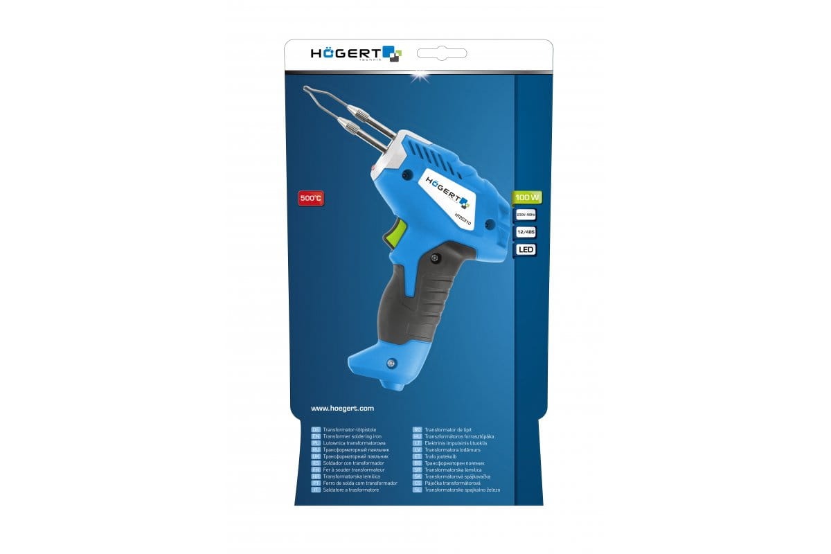 Lutownica transformatorowa o mocy 100W Högert służy do łączenia metodą lutowania miękkiego materiałów metalowych za pomocą spoiw cynowych lub cynowo-ołowiowych. Jest praktyczna w użyciu. Znajduje zastosowanie przy łączeniu elementów o większym przekroju, np. elektrycznych instalacji samochodowych lub elektrycznych instalacji domowych niskiego napięcia.