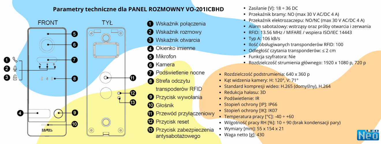 Wideodomofon VP-209ICSB-B oferuje zaawansowane technologie, takie jak SIP, HD, IPS. Charakteryzuje się klasą szczelności IP66 i odpornością na uderzenia IK07, zapewniając wysoką jakość komunikacji wizualnej i dźwiękowej w każdych warunkach. Dzięki protokołowi SIP umożliwia rozmowy audio i wideo przez Internet, a rozdzielczość HD oraz matryca IPS gwarantują wyraźny obraz pod dowolnym kątem. Kodowanie video H265 optymalizuje przepustowość sieci, a technologia RFID zwiększają bezpieczeństwo dostępu. System może obsługiwać do 8 paneli zewnętrznych i 10 monitorów, co czyni go wszechstronnym rozwiązaniem dla różnych budynków: mieszkalnych, biurowych czy publicznych.