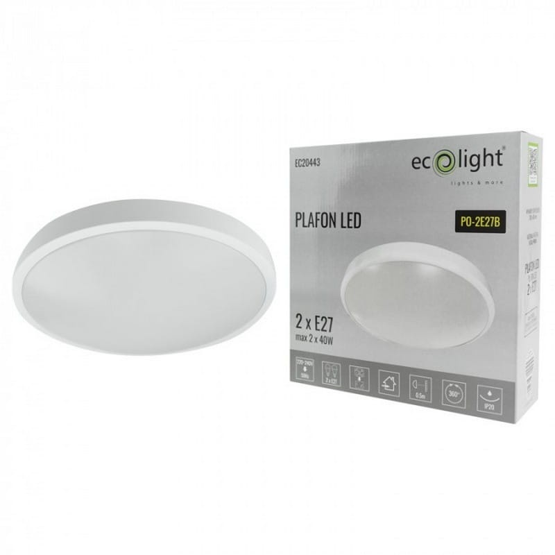 Biała plafoniera marki Ecolight nadaje się do oświetlania powierzchni mieszkalnych i usługowych. Obudowa została wykonana z metalu a mleczny klosz z tworzywa PMMA o wysokiej przepuszczalności światła. Dzięki dwóm gniazdom na żarówkę E27 jest jeszcze bardziej elastyczną plafonierą - pozwala użytkownikowi na indywidualny dobór parametrów świetlnych. Plafoniera charakteryzuje się także niską pyło- i wodoszczelnością. Brak źródła światła w zestawie!