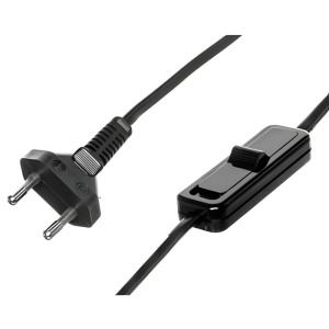 Przewód przyłączeniowy OMYp 2x0,5mm² 1,9m z wtyczką 2,5A 250V i wyłącznikiem PC-2 czarny