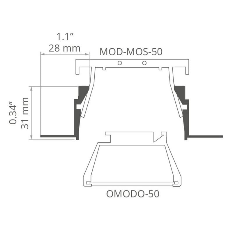 Profil techniczny MOD-KR-KOZE jest częścią listwy montażowej. Wykonany został z wysokogatunkowego, nieanodowanego aluminium. Artykuły uzupełniające znajdują się na pasku, w zakładce Produkty powiązane