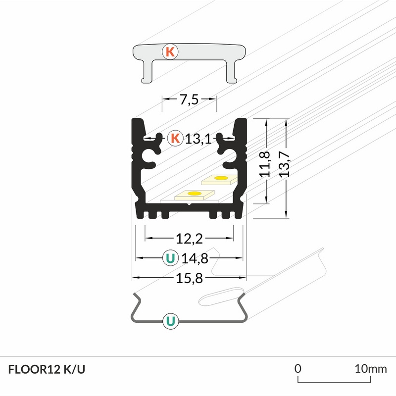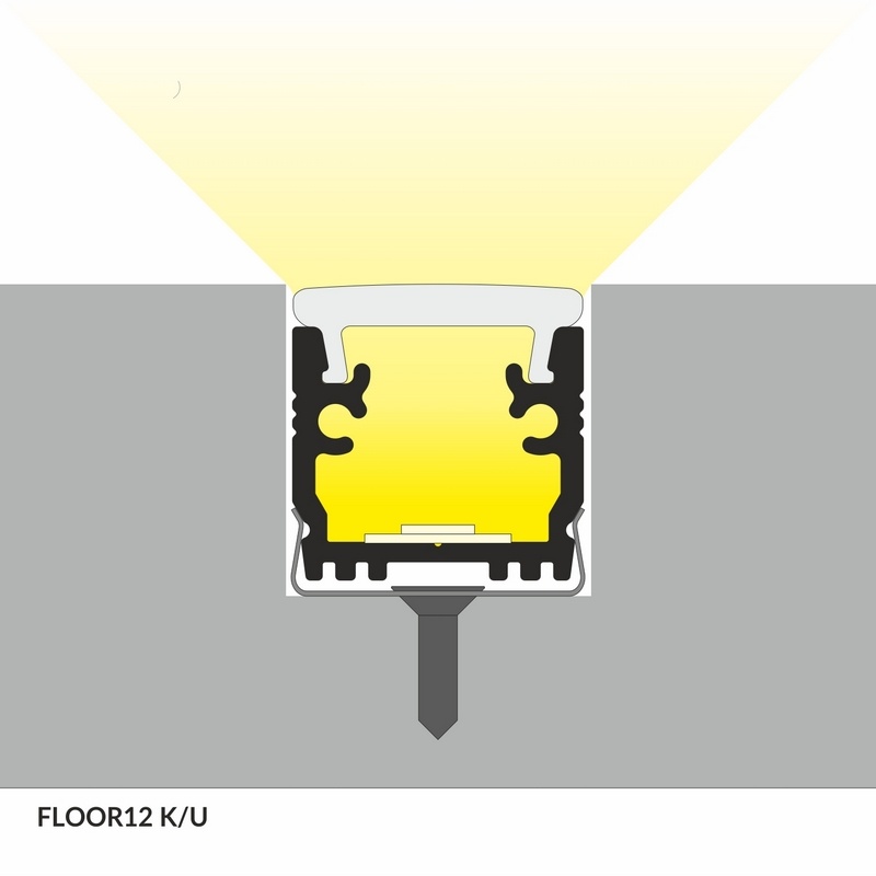 Profil LED FLOOR12 w wersji anodowanej został zaprojektowany z myślą o montażu w podłożu – w tym w posadzkach, stopniach schodowych czy innych powierzchniach płaskich. Dzięki niskiej wysokości oraz możliwości zastosowania uszczelek i zaślepek z otworem, doskonale sprawdza się w wymagających warunkach użytkowych. Wykonany z aluminium anodowanego, cechuje się wysoką odpornością na korozję i zarysowania.