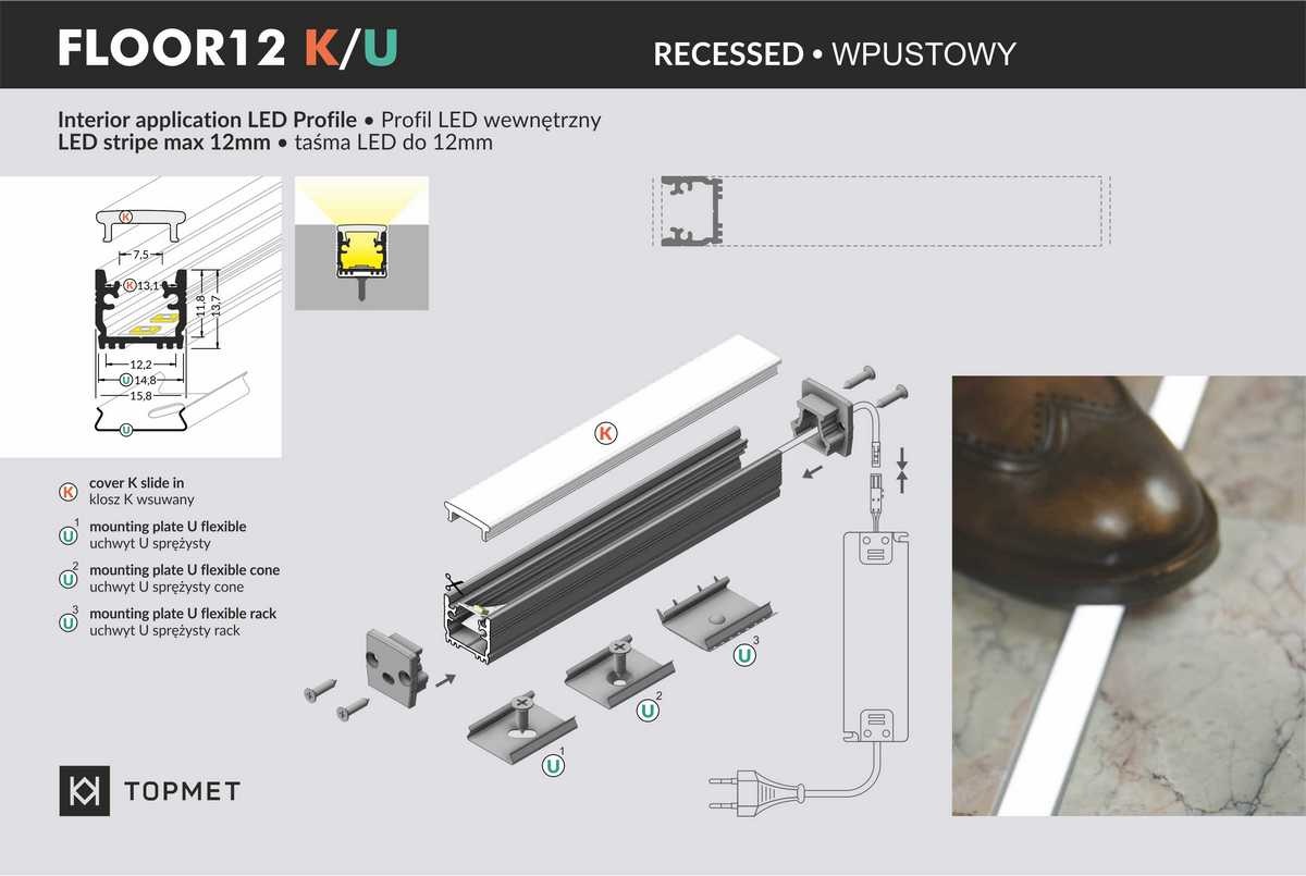Profil nie zawiera klosza ani akcesoriów montażowych – należy je dobrać osobno. Wybierz długość profilu i stwórz funkcjonalne oświetlenie LED podłogowe lub wpuszczane z profesjonalnymi komponentami Topmet.