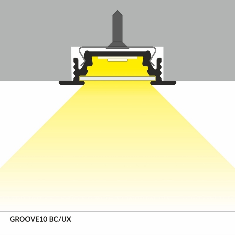 Profil aluminiowy GROOVE10 to rozwiązanie dedykowane do estetycznych instalacji LED w zabudowie zlicowanej. Dzięki anodowanej powierzchni jest odporny na zarysowania, a jego minimalistyczna konstrukcja pozwala na dyskretny montaż w meblach, sufitach podwieszanych lub płytach MDF. Kompatybilny z taśmami LED o szerokości do 10 mm.