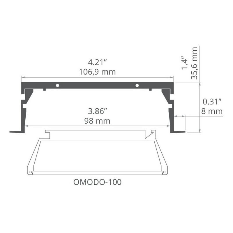 Profil techniczny RAM-KOL-100 pasujący do profilu OMODO-100. Produkt montowalny w powierzchniach karton-gipsowych. Artykuły uzupełniające znajdują się na pasku, w zakładce Produkty powiązane