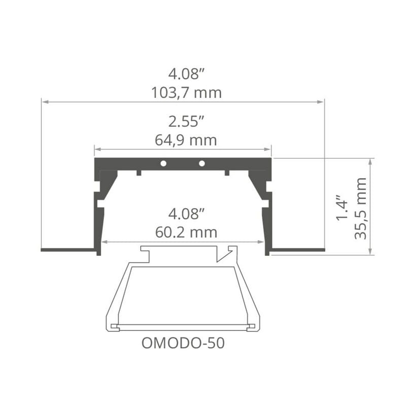 Profil techniczny RAM-TEK-50, pasujący do profilu OMODO-50. Produkt montowalny w powierzchniach karton-gipsowych. Artykuły uzupełniające znajdują się na pasku, w zakładce Produkty powiązane