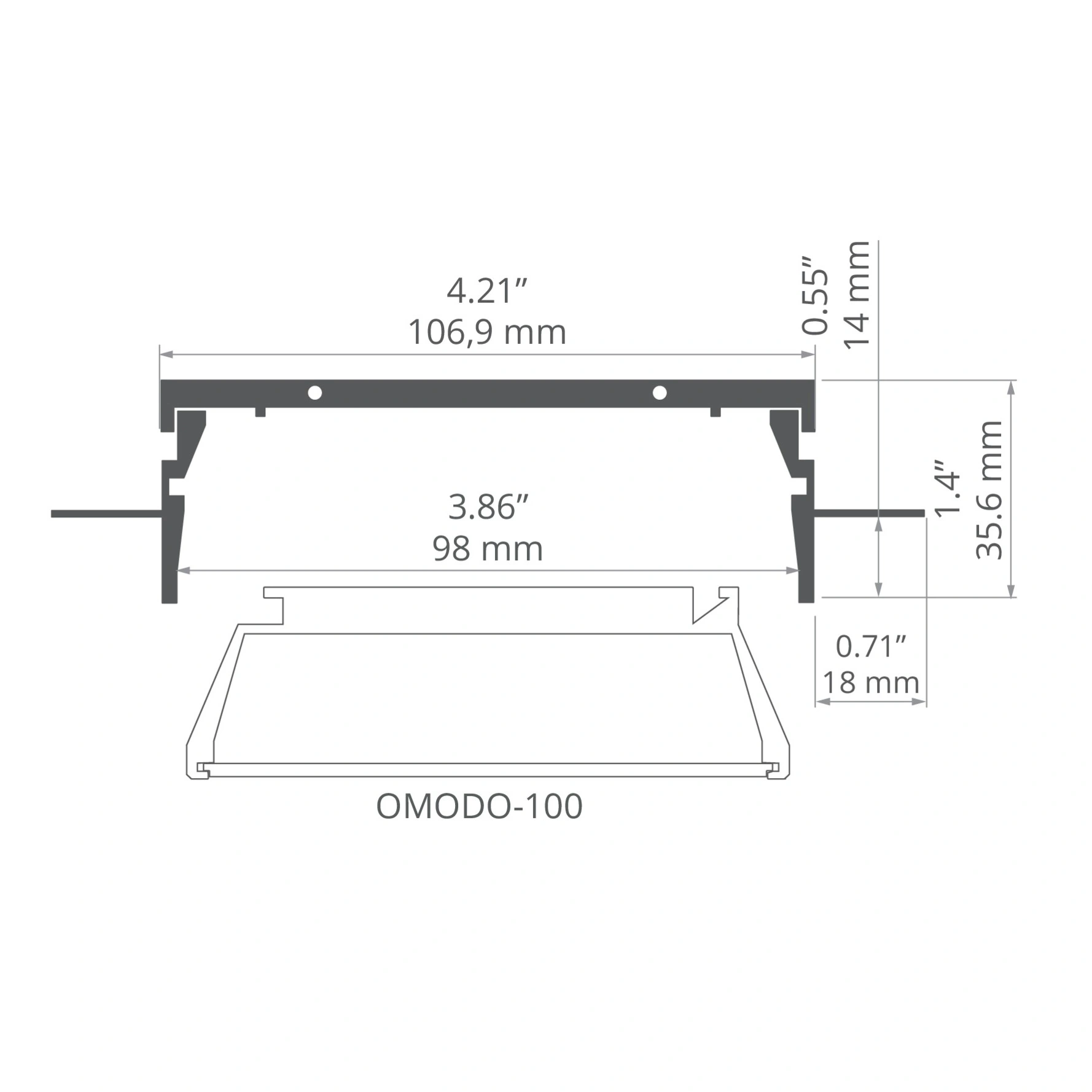 Profil techniczny RAM-TEK-100 pasujący do profilu OMODO-100. Produkt montowalny w powierzchniach karton-gipsowych. Artykuły uzupełniające znajdują się na pasku, w zakładce Produkty powiązane