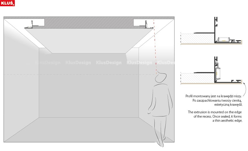 Profil NISA-NI KPL do podświetlania nisz osłona transparentna; odcinki: 1m, 2m, 3m KLUŚ