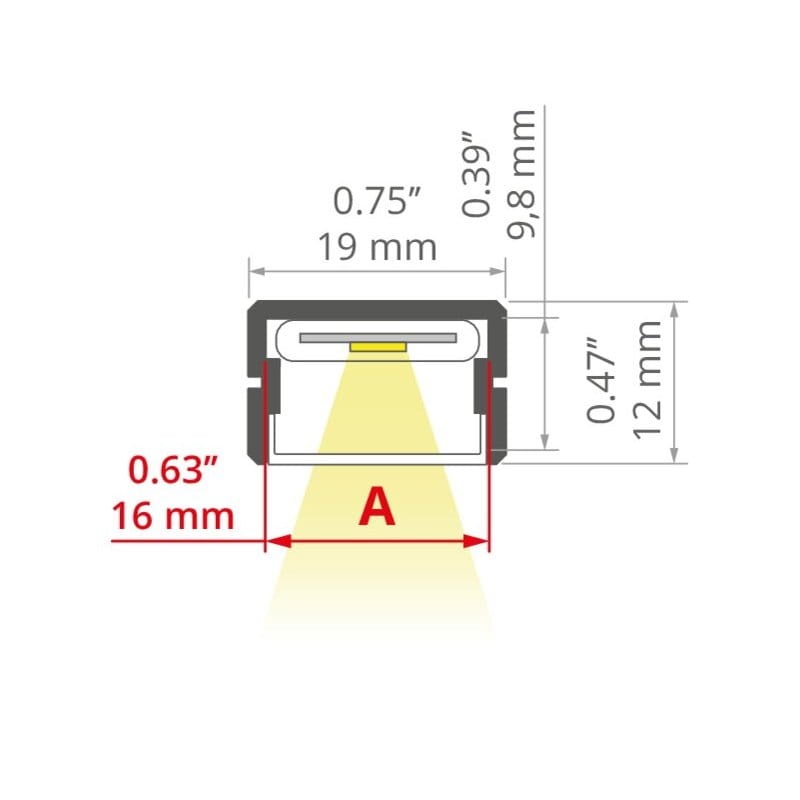 Jego przekrój oparty jest o kształt ceownika. Wewnętrzny wymiar szerokości płaszczyzny do której wkleja się paski LED na ok. 16,6 mm. głębokość profilu ma wymiar 11 mm. Boczne elementy profilu SILER, na zewnątrz wyposażone są w szczeliny umożliwiające zastosowanie mocowników „45”. Artykuły uzupełniające znajdują się na pasku, w zakładce Produkty powiązane