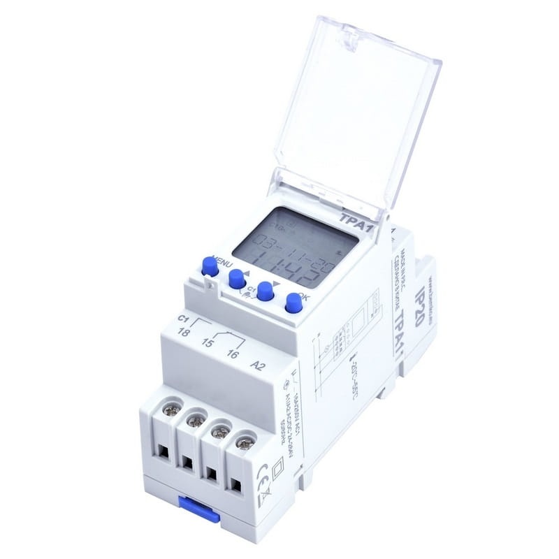 Programator czasowy bazujący na zegarze astronomicznym. Urządzenie służy do włączania oraz wyłączania oświetlenia lub innych połączonych z programatorem odbiorników elektrycznych. Dzięki funkcji zegara astronomicznego, programator działa zgodnie z porami wschodu oraz zachodu słońca, model A25-TPA1 uwzględnia także informacje o szerokości geograficznej miejsca instalacji, więc dane na których działa są bardzo dokładne.