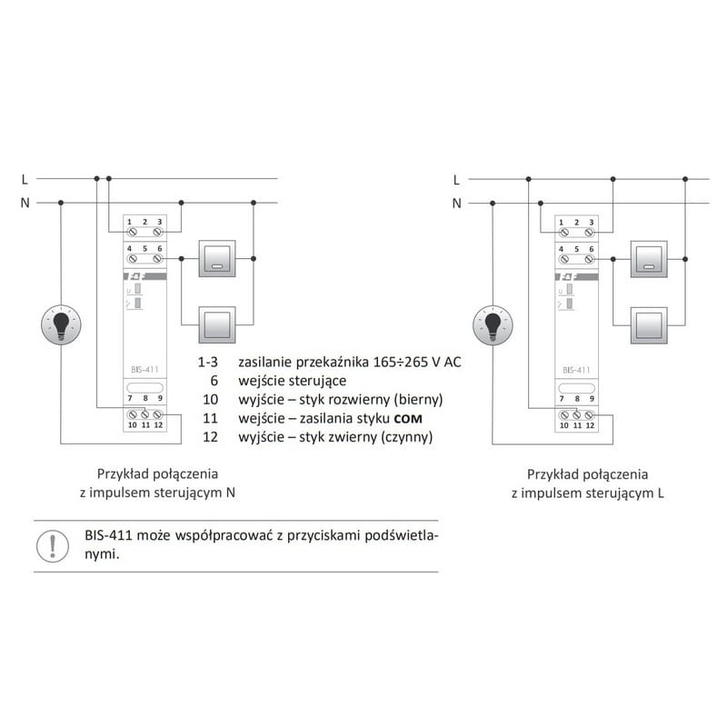 Przekaźniki bistabilne umożliwiają sterowanie oświetleniem za pomocą praktycznie dowolnej ilości przycisków chwilowych(dzwonkowych). Jest to rozwiązanie, które z jednej strony zastąpi doskonale klasyczne krzyżowe wyłączniki schodowe, a z drugiej poprzez dołączenie dodatkowych przycisków pozwoli uzyskać efekty nieosiągalne w klasycznej instalacji elektrycznej. Jeden przycisk może być przy wejściu do salonu, drugi przy wejściu do kuchni, trzeci przy schodach, czwarty, piąty…. Jedno naciśnięcie dowolnego przycisku włączy światło, kolejne naciśnięcie dowolnego przycisku wyłączy. Przyciski włączające/wyłączające konkretne oświetlenie możemy więc rozmieścić w ilości i miejscach, które uważamy dla nas za komfortowe przy aranżacji przestrzeni naszego domu.