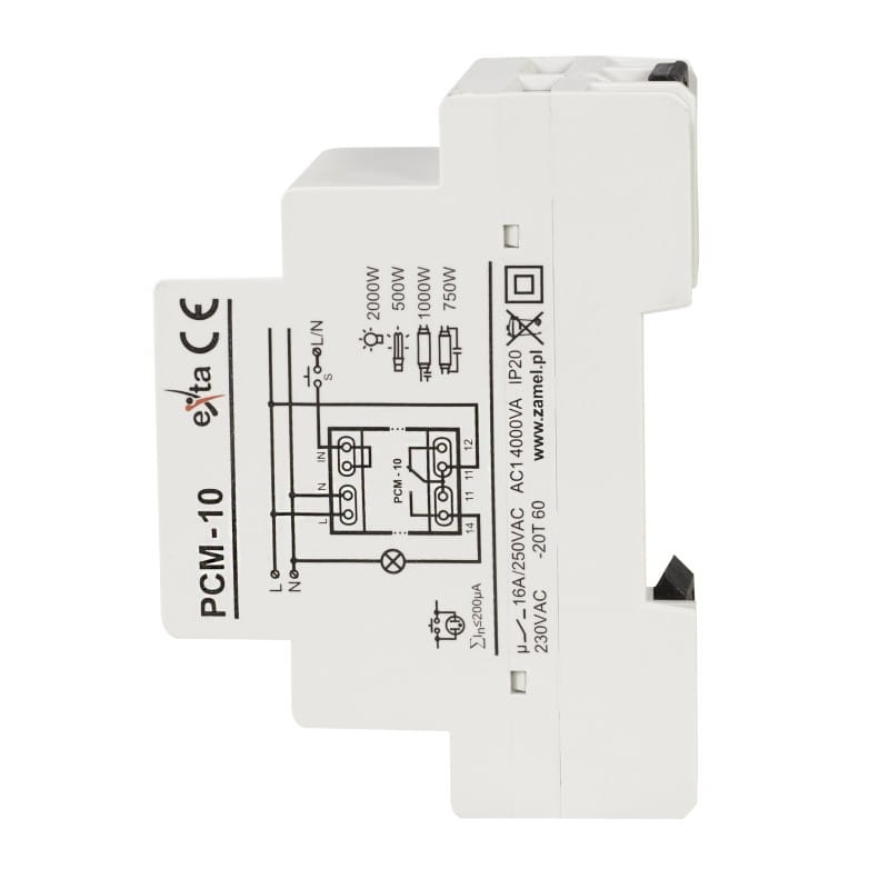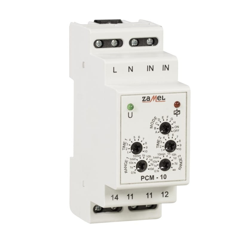 PCM-10 to wielofunkcyjny przekaźnik czasowy, który realizuje funkcje czasowe w systemach automatyki i sterowania, oferując 10 trybów pracy wyzwalanych napięciem zasilającym lub zewnętrznym impulsem. Charakteryzuje się szerokim zakresem nastaw czasu, wysoką dokładnością oraz funkcjami stałego załączenia i wyłączenia. Umożliwia zmianę trybu bez oczekiwania na zakończenie cyklu. Urządzenie posiada wyjście przekaźnikowe o obciążalności 16A oraz diody LED sygnalizujące stan przekaźnika i napięcie zasilania. Montaż odbywa się na szynie TH35.