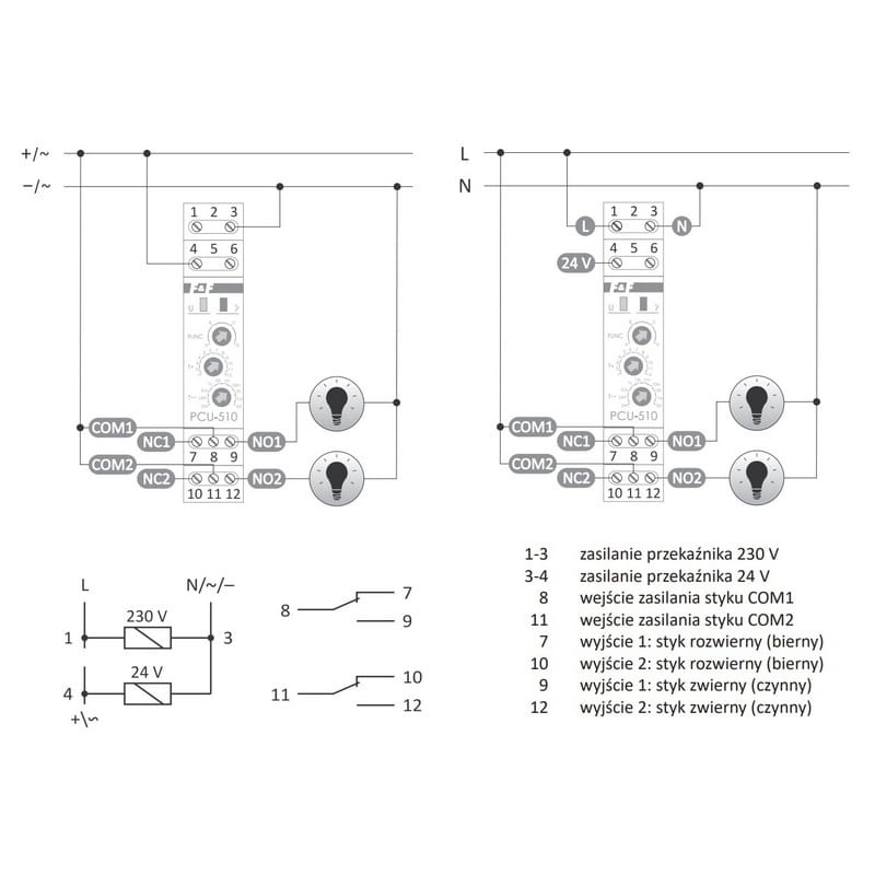 - Napięcie zasilania: 230V AC / 24V AC/DC