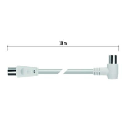 Koncentryczny przewód antenowy z wtyczką i gniazdkiem IEC. Przewód ma złącze kątowe (90°). Przewód jest podwójnie ekranowany w celu redukcji zakłóceń elektromagnetycznych. Długość przewodu wynosi 10 m. Przewód koncentryczny jest przeznaczony do SAT, DVB-T, ANT, DECODER, FLAT TV i TV.