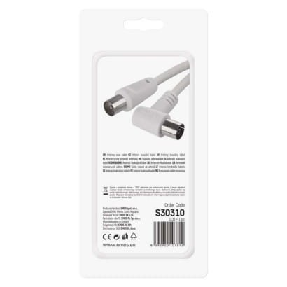 Koncentryczny przewód antenowy z wtyczką i gniazdkiem IEC. Przewód ma złącze kątowe (90°). Przewód jest podwójnie ekranowany w celu redukcji zakłóceń elektromagnetycznych. Długość przewodu wynosi 3,5 m.