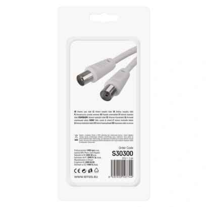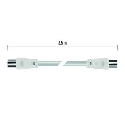 Koncentryczny przewód antenowy z wtyczką i gniazdkiem IEC. Przewód jest podwójnie ekranowany w celu redukcji zakłóceń elektromagnetycznych. Długość przewodu wynosi 3,5 m. Przewód koncentryczny jest przeznaczony do SAT, DVB-T, ANT, DECODER, FLAT TV i TV.