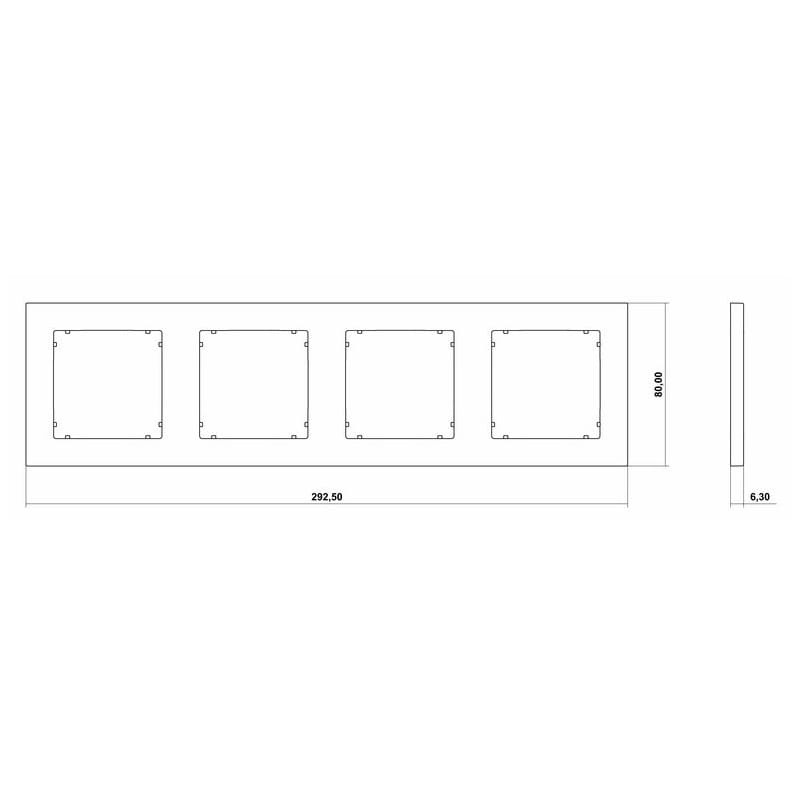 Ramka uniwersalna poczwórna przeznaczona jest do łączników i gniazd z serii MINI. Posiada stopień ochrony na czynniki zewnętrzne IP20. Ramki serii MINI są uniwersalne to znaczy umożliwiają montaż produktów w poziomie i pionie.