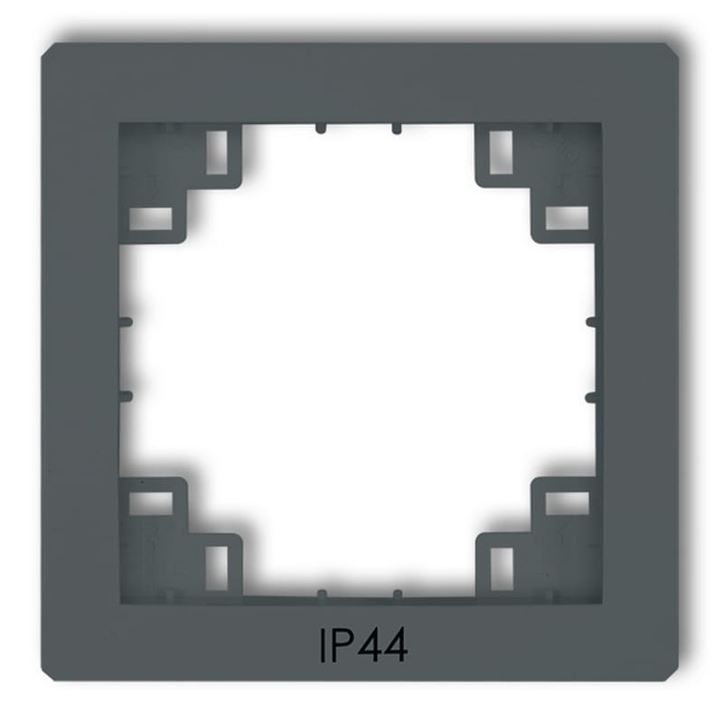 Ramka pośrednia do łączników IP44, przeznaczona jest do łączników z serii DECO, w których zastosowano uszczelniacz U-1. Na ramce widnieje napis IP44. Stosowana jest w miejscach, gdzie konieczne jest oznaczenie klasy szczelności (szkołach, budynkach użyteczności publicznej). Wykonana z tworzywa ASA.