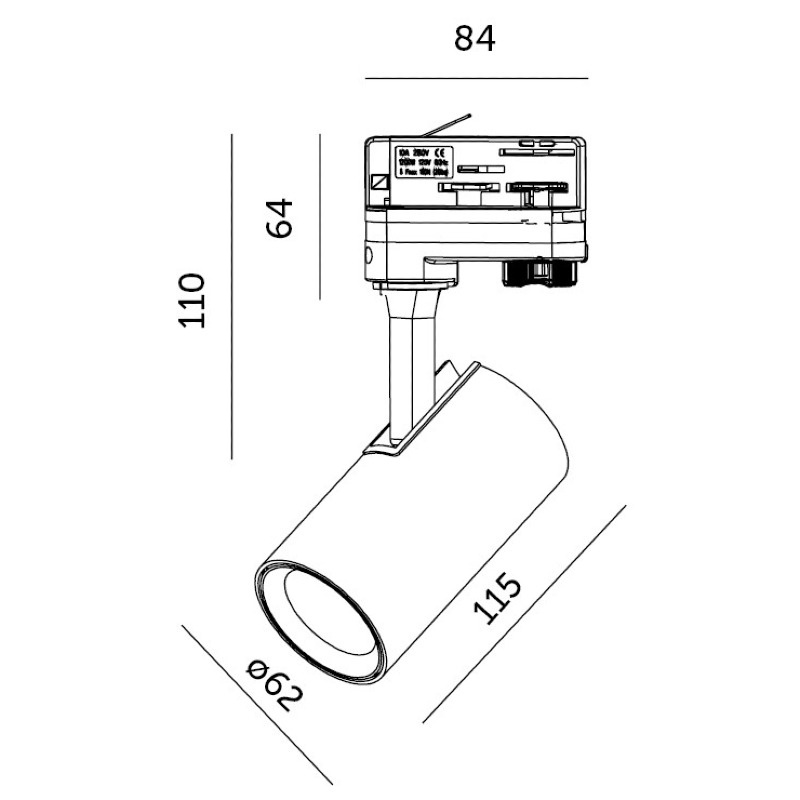 Nowoczesny, tubowy kształt o średnicy 62 mm i długości 115 mm pozwala na stworzenie spójnego, eleganckiego systemu oświetlenia akcentującego. Oprawa zasilana jest bezpośrednio z sieci 230V AC poprzez adapter szynowy. Brak źródła światła w zestawie! - sprawdź pasujące żarówki LED