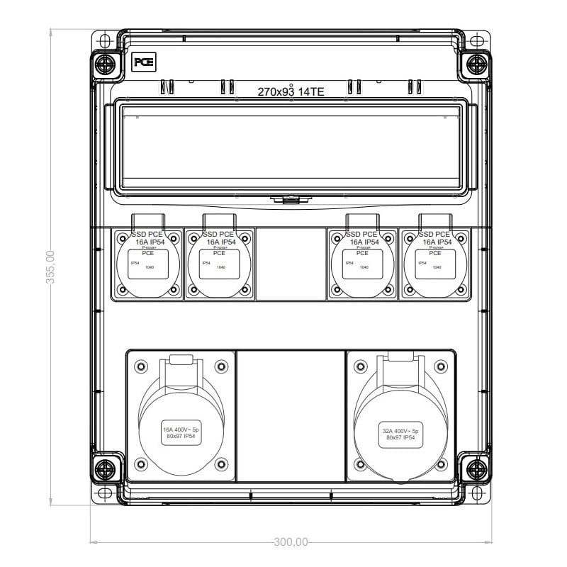 Rozdzielnica natynkowa OPOLE 14 modułów + 4x gniazdo 230V schuko + gniazdo 16A/5P + gniazdo 32A/5P IP54 909110002W PCE