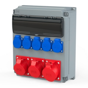 Rozdzielnica natynkowa, została wyposażona w pięć gniazda domowe 230V (typ schuko) oraz jedno gniazdo siłowe 16A i dwa 32A. W zestawie złączka kablowa Vario L1,L2,L3,N,PE, szyna pod zabezpieczenia TH35-7,5. Firma PCE od lat zaopatruje fachowców najwyższej jakości osprzęt siłowy.