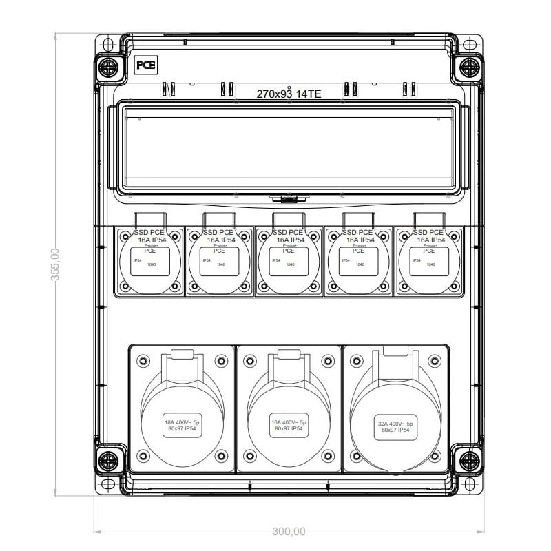 Rozdzielnica natynkowa OPOLE 14 modułów + 5x gniazdo 230V schuko + gniazdo 16A/5P + gniazdo 32A/5P IP54 909110001W PCE