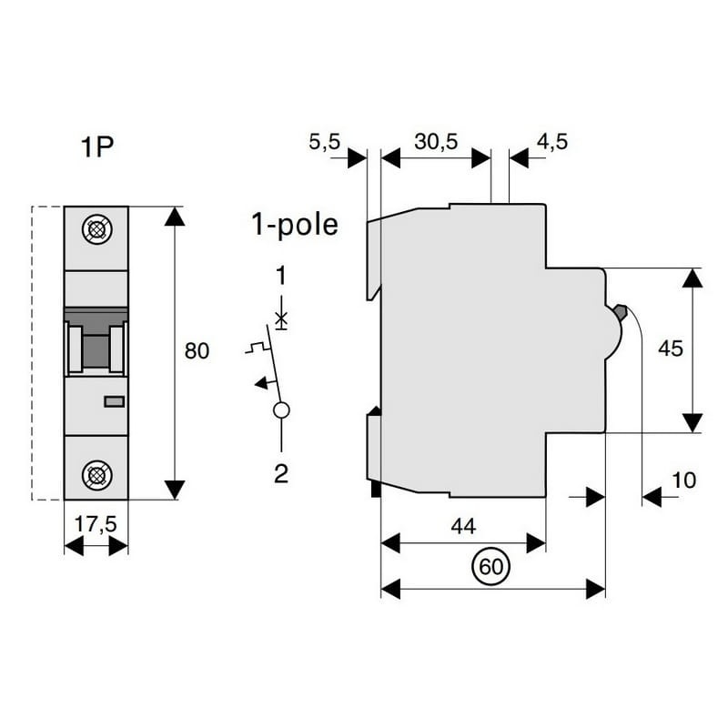Rozłącznik izolacyjny, modułowy, 1-biegunowy: służy do rozłączania obwodów obciążonych prądem znamionowym. Przewodzi prąd w warunkach znamionowych oraz podczas przeciążeń, zwarć lub innych awarii przez określony czas. Ponad to ma za zadanie izolowanie prądu, zapewnia więc bezpieczna pracę podczas obsługi zasilanych elektrycznie urządzeń.