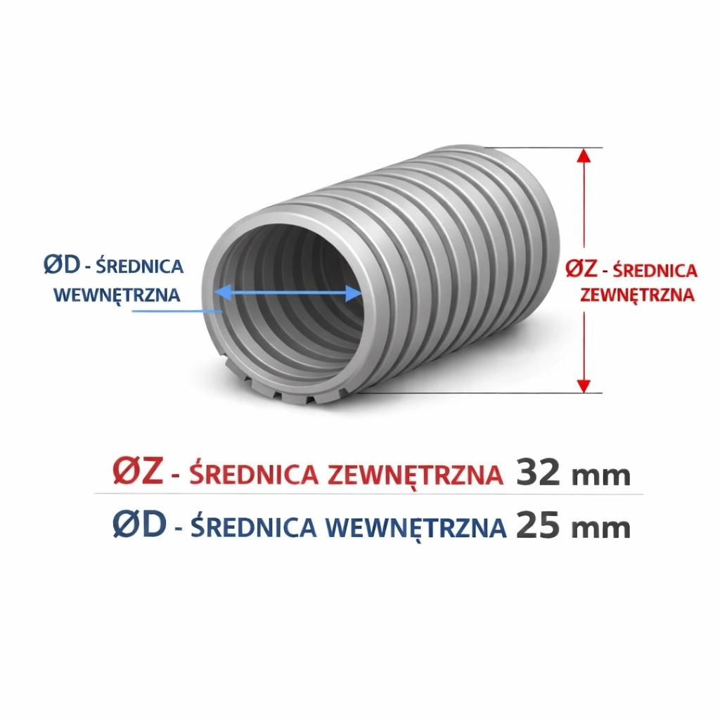 Rura giętka karbowana 32/25 PVC przeznaczona jest do osłony i prowadzenia przewodów w instalacjach elektrycznych podtynkowych i natynkowych. Znajduje zastosowanie w budownictwie mieszkaniowym i komercyjnym, instalacjach oświetleniowych oraz innych standardowych instalacjach elektrycznych.