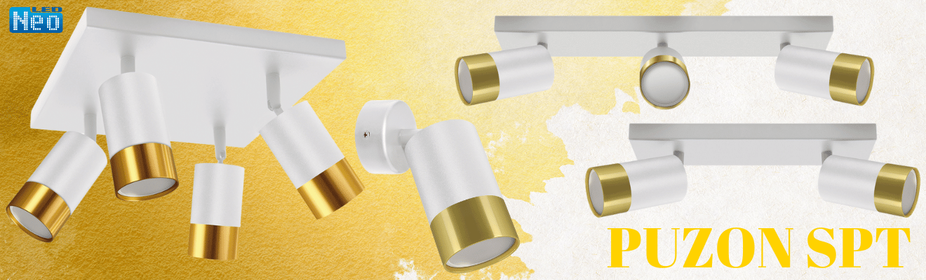 PUZON to rodzina regulowanych opraw sufitowo-ściennych marki STRÜHM. Oprawy w kolorze białym ze złotym akcentem są wyjątkowo stylowe i pozwalają na ich doskonałe dopasowanie do wnętrz w stylu klasycznym. Dzięki aluminiowej formie jednopunktowy spot jest lekki i wytrzymały. Ze względu na niską ochronę przed wilgocią i zapyleniem, produkt przeznaczony jest do zamontowania w miejscach takich jak salon, przedpokój. Brak źródła światła w zestawie!