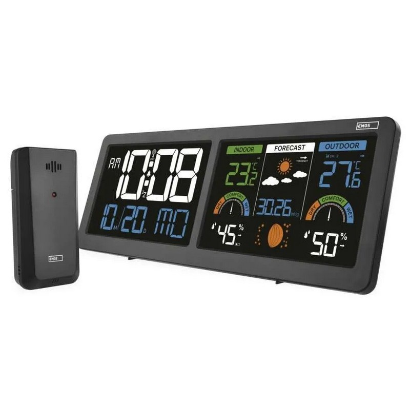 EMOS E8625 to funkcjonalna stacja meteorologiczna z barometrem, zegarem DCF i możliwością rozbudowy o dodatkowe czujniki. Sprawdzi się jako centralne źródło informacji o warunkach pogodowych w domu przez cały rok.